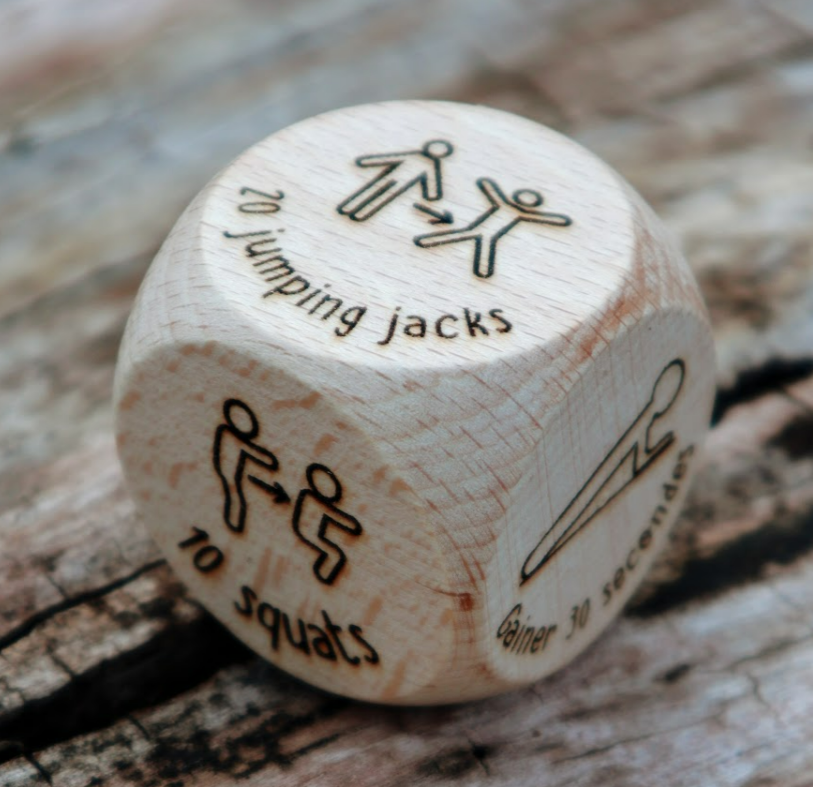 Funciona muy bien para sesiones de deporte en grupo, donde cada jugador, a su turno, lanza el dado y realiza la actividad. El primero que no pueda completar el ejercicio pierde.